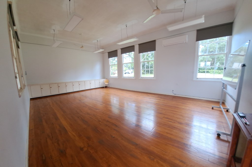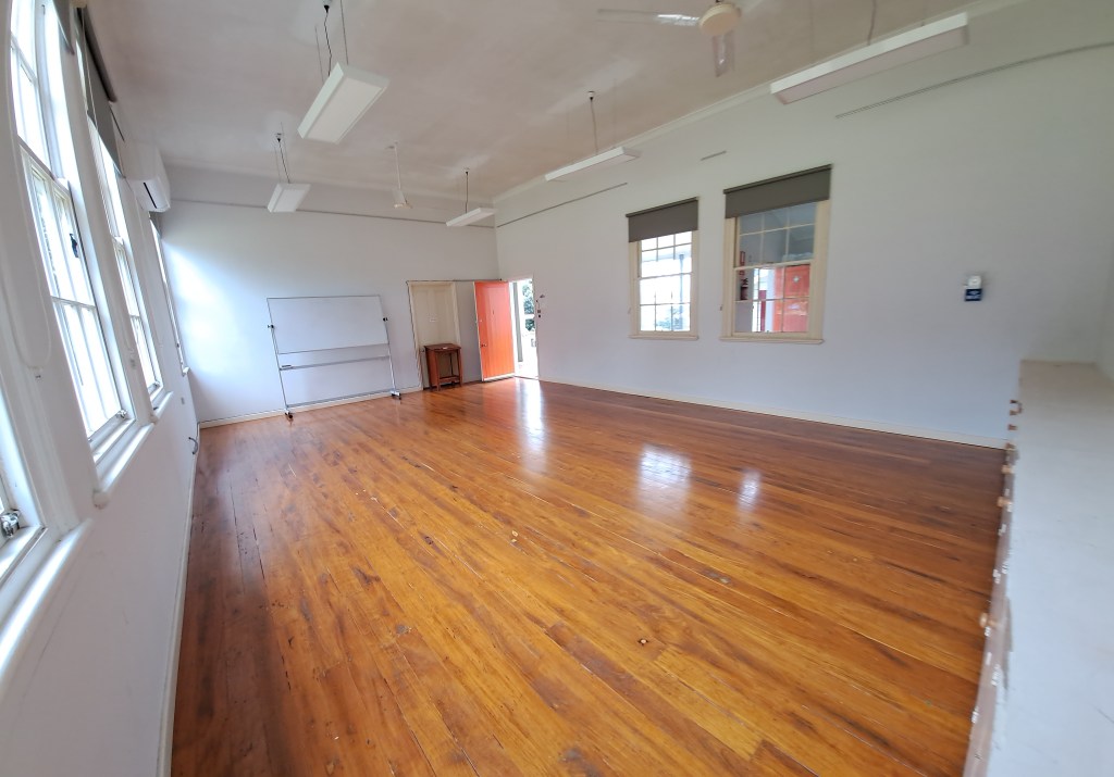 Classroom 1: available for casual hire only. This is an activities room suitable for dance, yoga, self-catered dinners, functions, meetings, parties, exercise and relaxation classes, wedding receptions, etc.